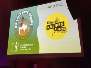 Konkurrenz hatte hier keinen Platz, stattdessen wurde #Kneipenchorliebe großgeschrieben. Es gab im E-Werk auf drei Bühnen die Chöre im halbstundentakt parallel auftretend zu sehen und zu hören und auch Publikum wurde eingeladen.