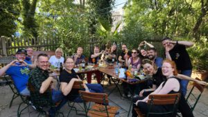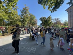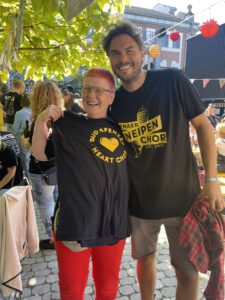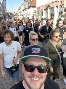 Am zweiten Tag folgten dann diverse Workshops mit den Chorleiter:innen (oder eben Ausnüchtern von der Party tags zuvor)… Mittagspause und schwupp sind alle Chöre nochmal im Erlanger Stadtgebiet aufgetreten. Alles Hervorragend organisiert von dem Erlanger Kneipenchor. Danach haben sich alle 700 Menschen auf einem Platz in Erlangen getroffen und zusammen das Lied „Freiheit“ von Westernhagen geträllert.