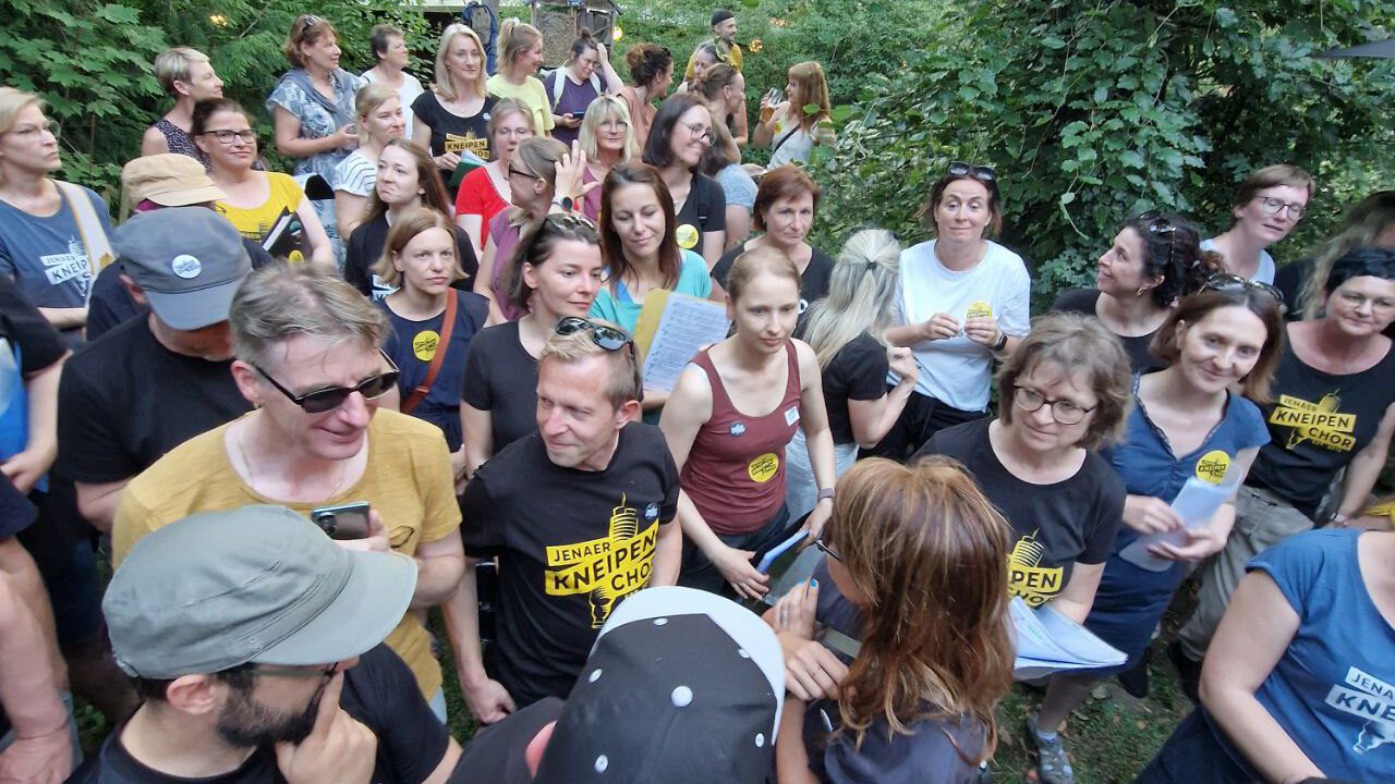Im Jenaer Kneipenchor sind aktuell ca. 90 Menschen (Stand September 2025) jedes Alters, die einfach Freude an gemeinsamen Singen haben.
